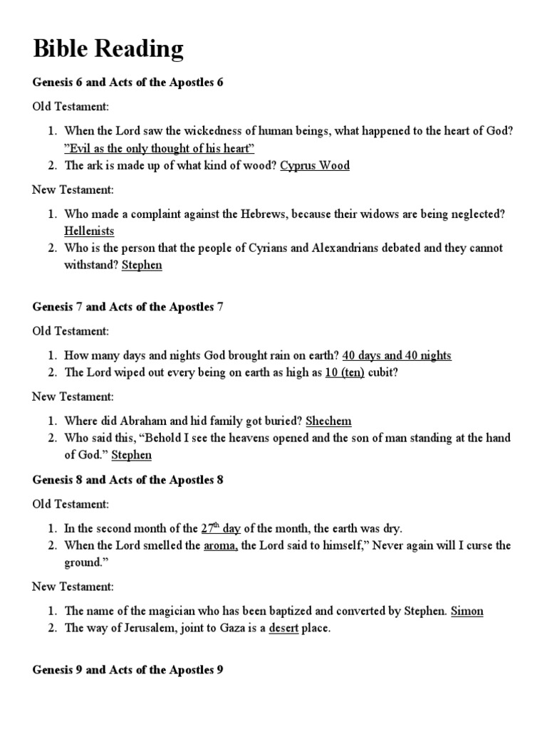 1. How many days and nights God brought rain on earth? 40 days and 40 nights
