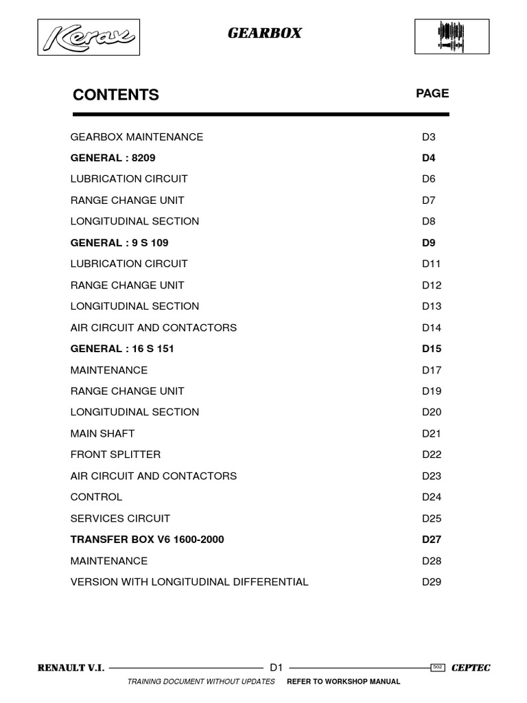 Renault V.I. Gearbox Maintenance Guide