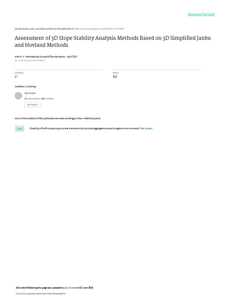 Author keywords: Slope stability; Three-dimensional; Safety factor; Hovland method; 3D simplified Janbu method.