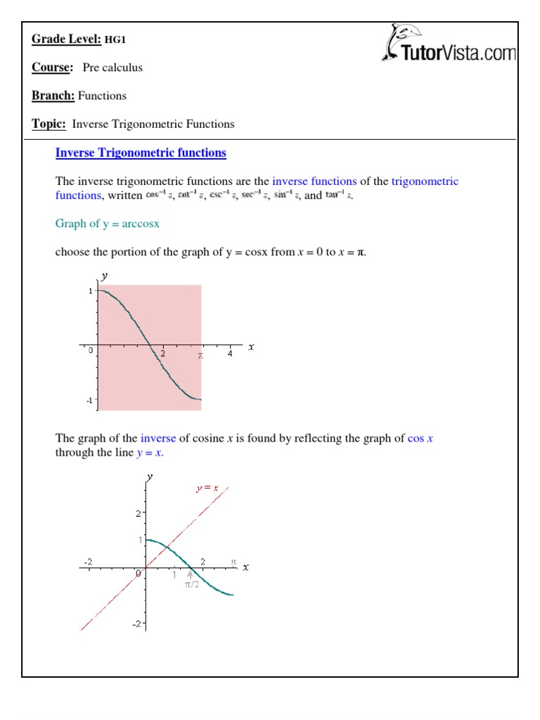 The graph of the inverse of cosine x is found by reflecting the graph of cos x