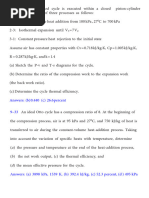 An ideal Diesel engine with air as the working fluid has a compression ratio of 20.