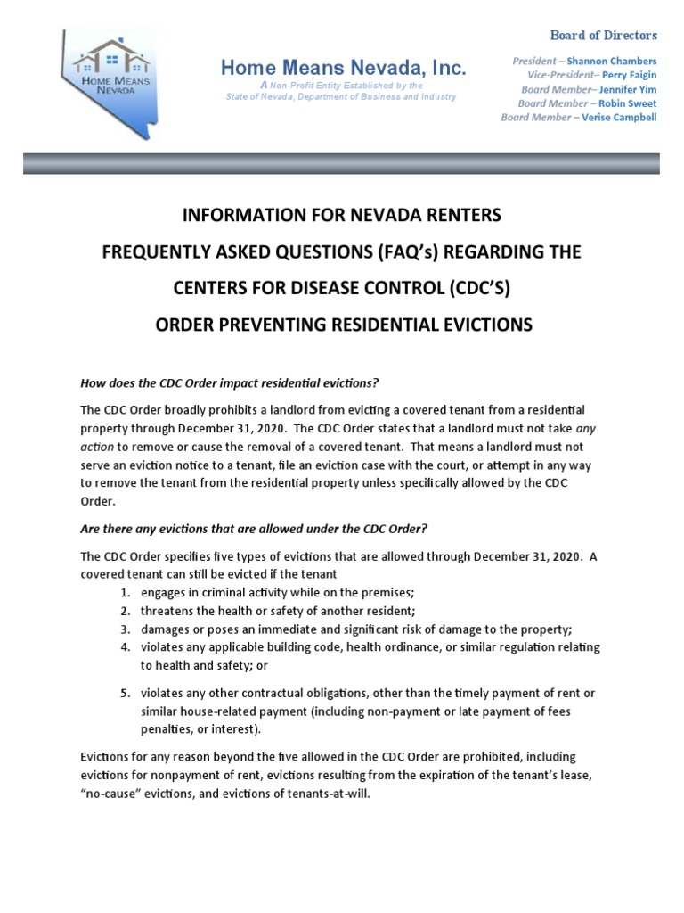 categories stated in the CDC Order. While Nevada’s state-wide moratorium continues to