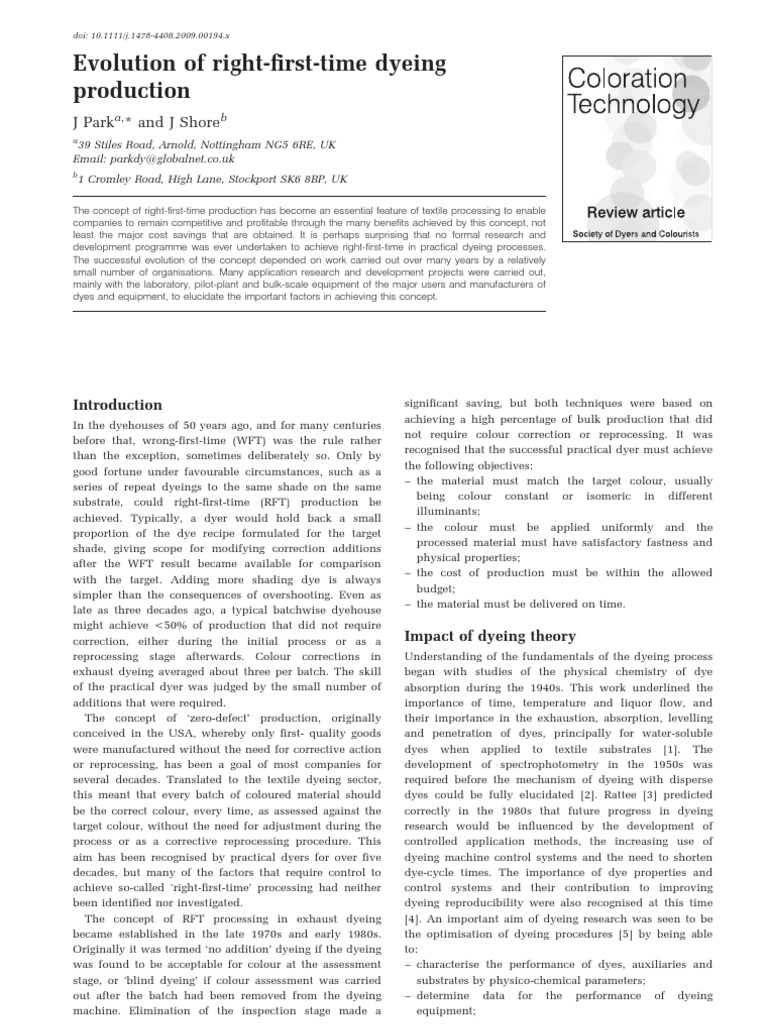 Evolution of right-first-time dyeing