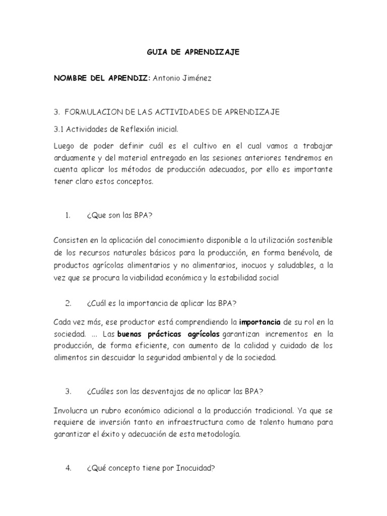 reflexión, acerca de las BPA.