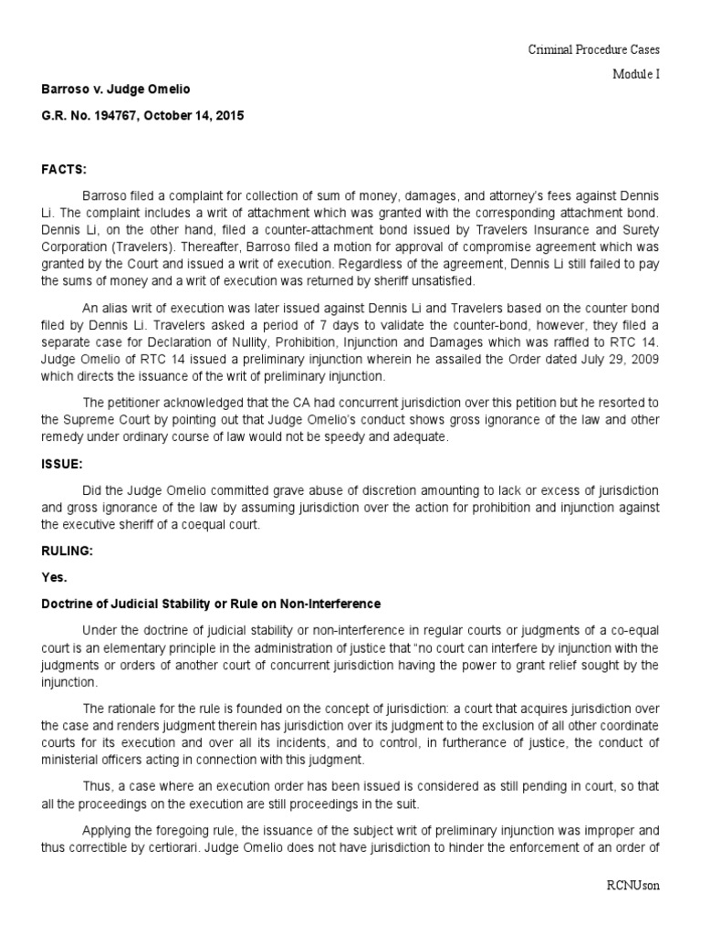 Judge Omelio of RTC 14 issued a preliminary injunction wherein he assailed the Order dated July 29, 2009