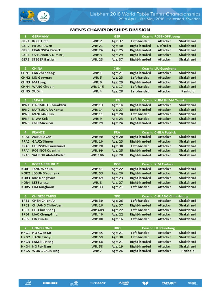 GER4 OVTCHAROV Dimitrij WR: 3 Age: 29 Right-handed Attacker Shakehand
