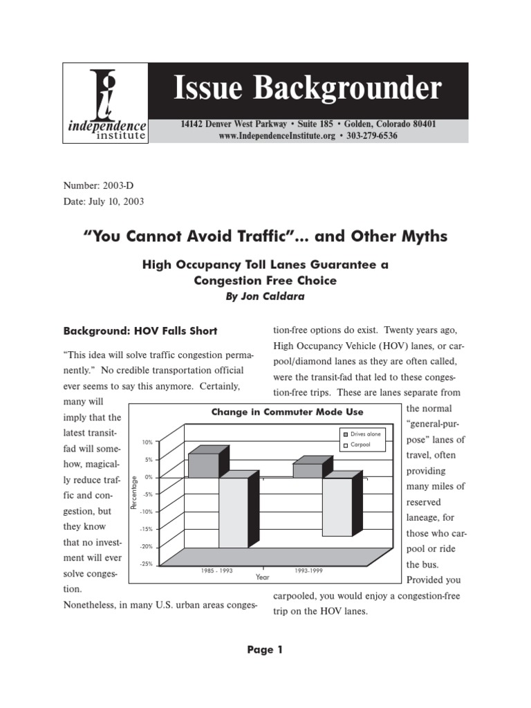 portation officials should not delay the imple- Copyright © 2003, Independence Institute