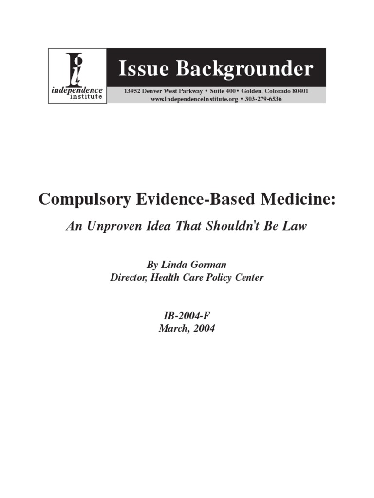 RB. Evidence-based medicine: how to practice INDEPENDENCE INSTITUTE is a nonprofit,