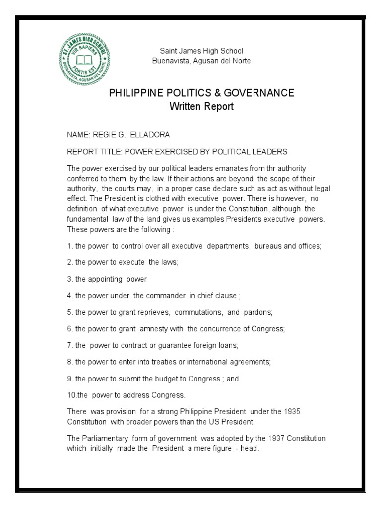 REPORT TITLE: POWER EXERCISED BY POLITICAL LEADERS