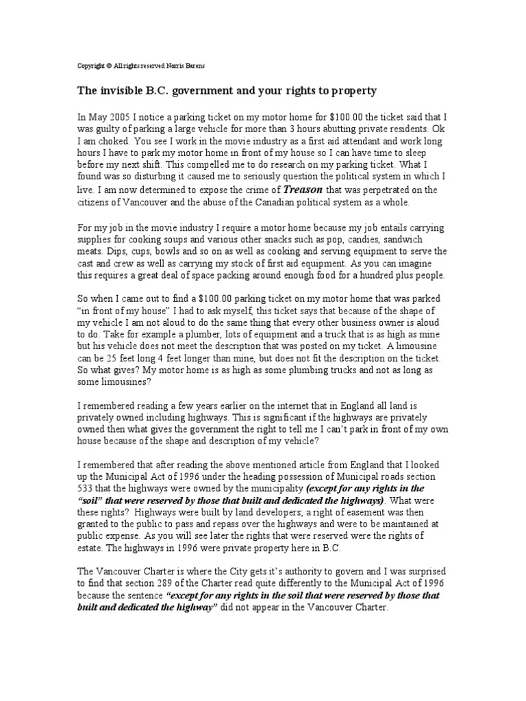 their rights in the soil of the highways until 1996 then why not Vancouverites?