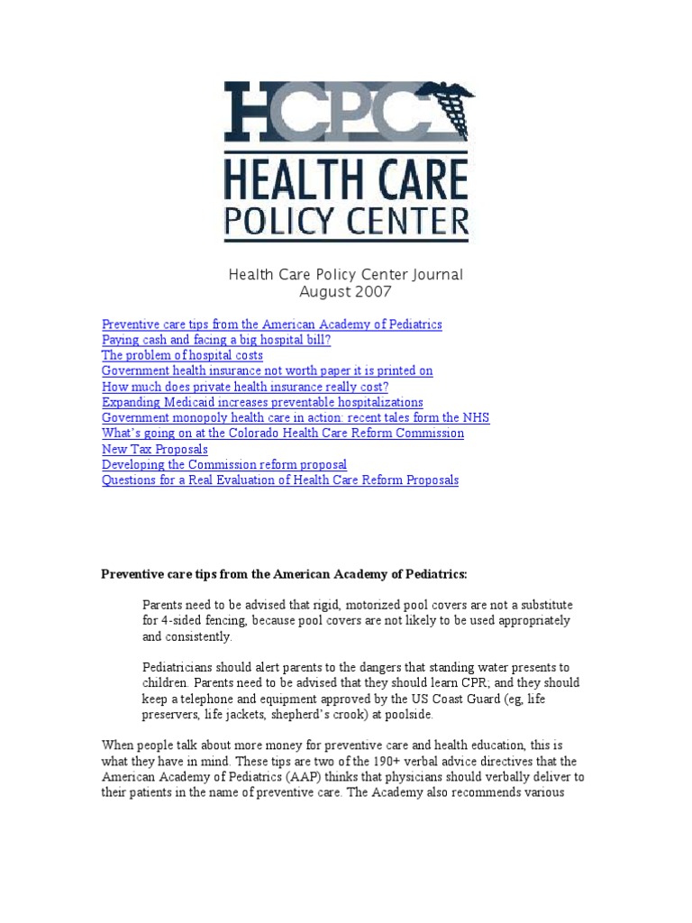 Health Care Policy Center Journal: August 2007