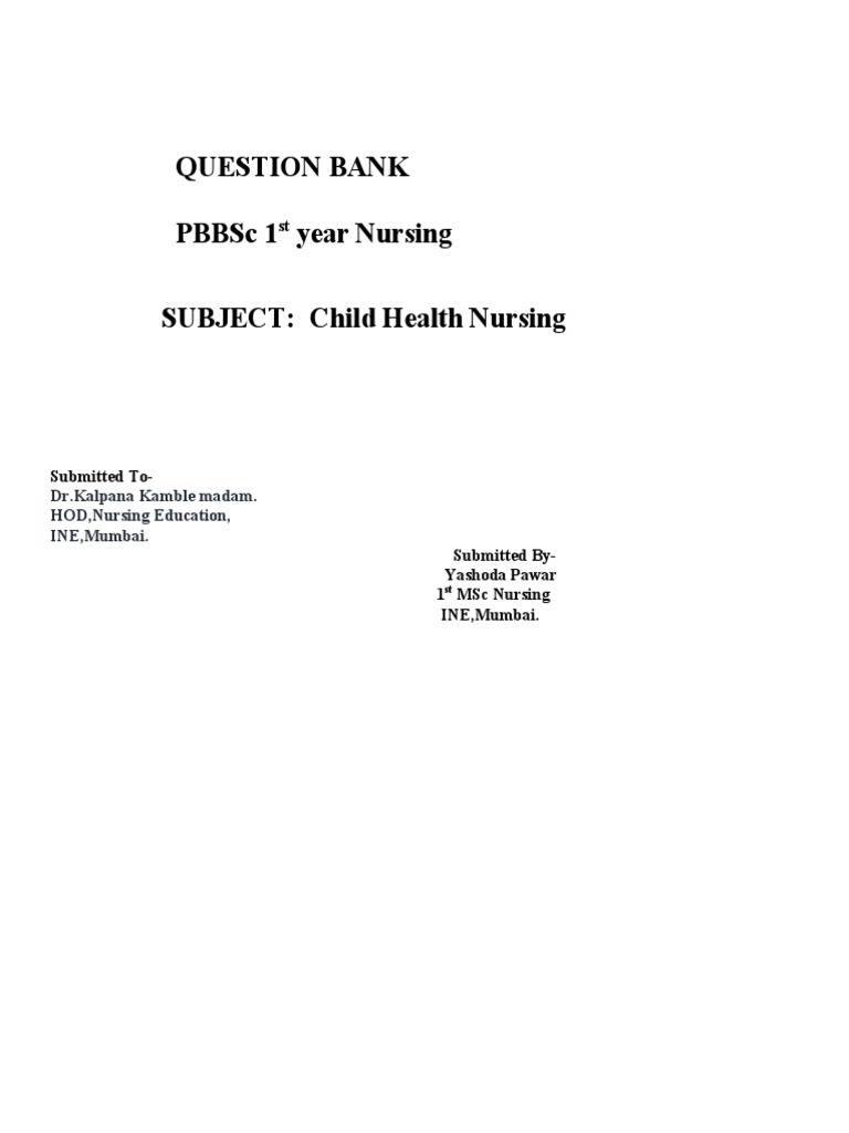 1. Master. Arun, a 4 year old is admitted in pediatric neuro-medical ward and is
