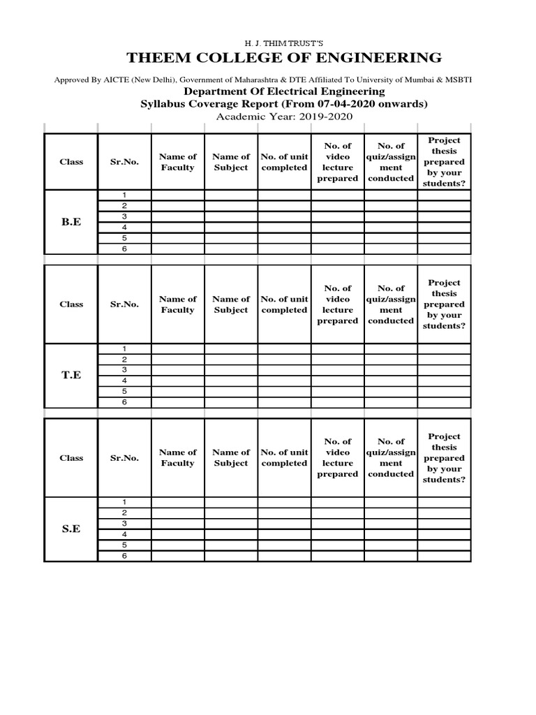 Syllabus Coverage Report (From 07-04-2020 onwards)