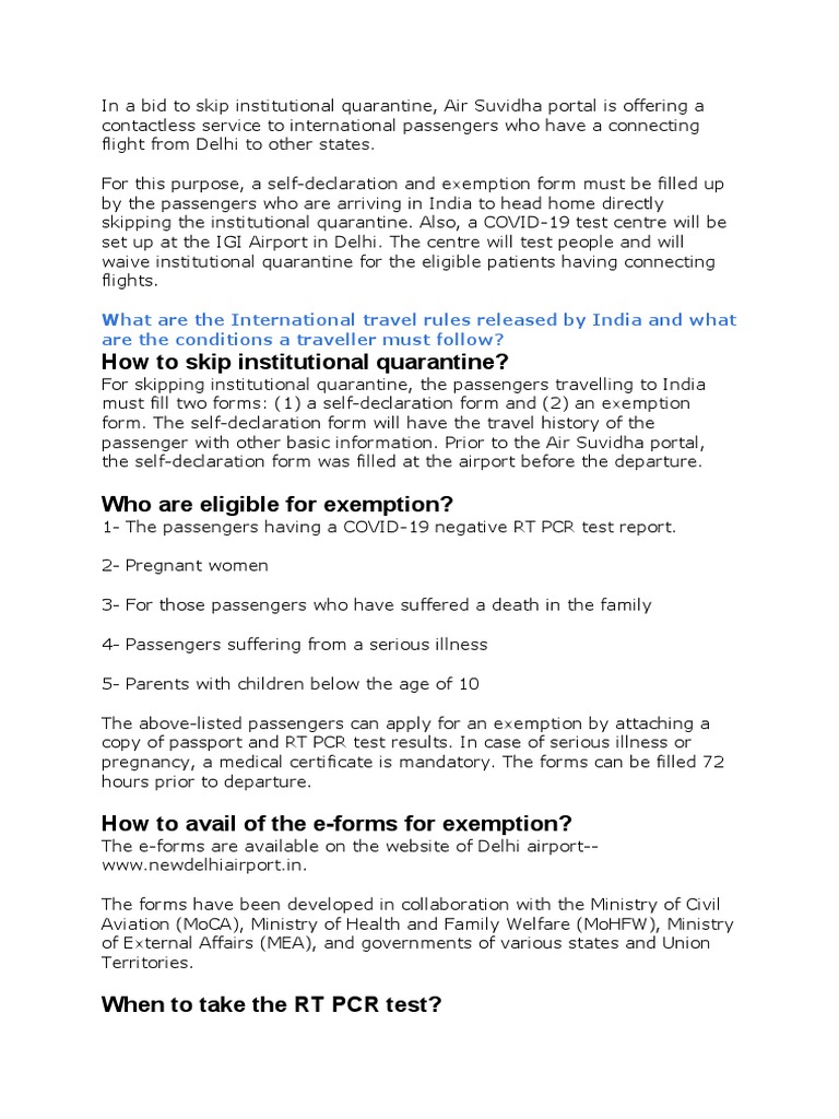 In a bid to skip institutional quarantine, Air Suvidha portal is offering a