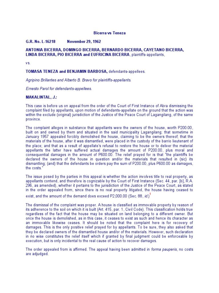 Bicerra vs Teneza Case Summary