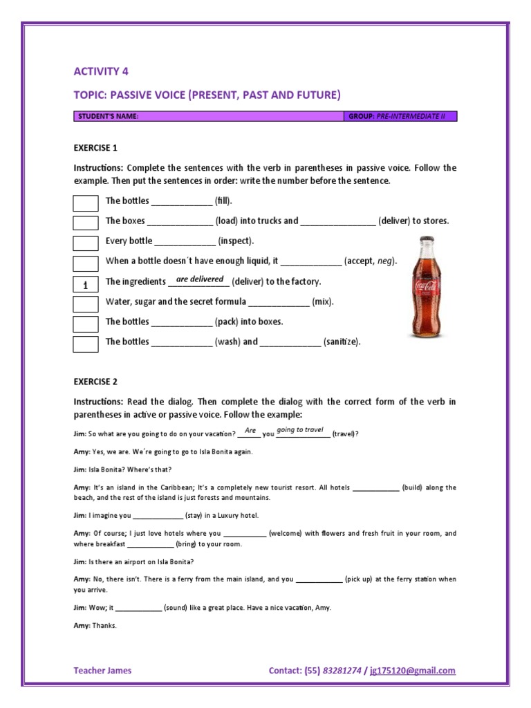 Instructions: Complete the sentences with the verb in parentheses in passive voice. Follow the