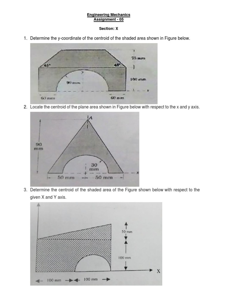 1. Determine the y-coordinate of the centroid of the shaded area shown in Figure below.