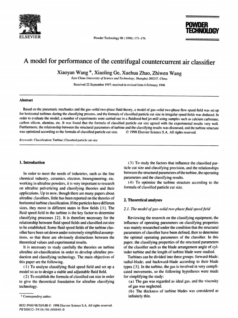 to give the theoretical foundation for ultrafine classifying (a) The gas was regarded as ideal gas, and the viscosity