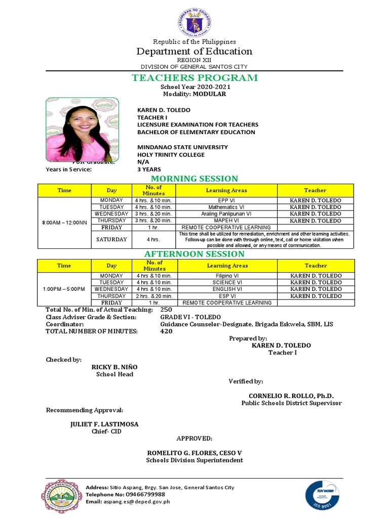 Class Adviser Grade & Section: GRADE VI - TOLEDO