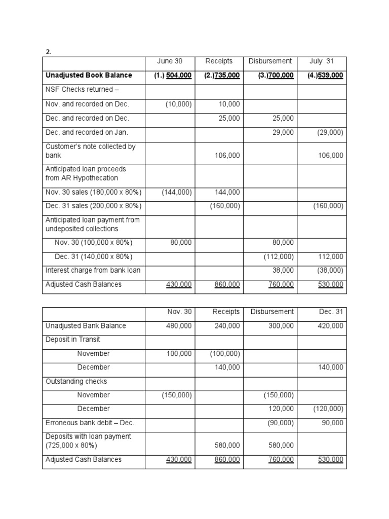 Unadjusted Bank Balance 480,000 240,000 300,000 420,000