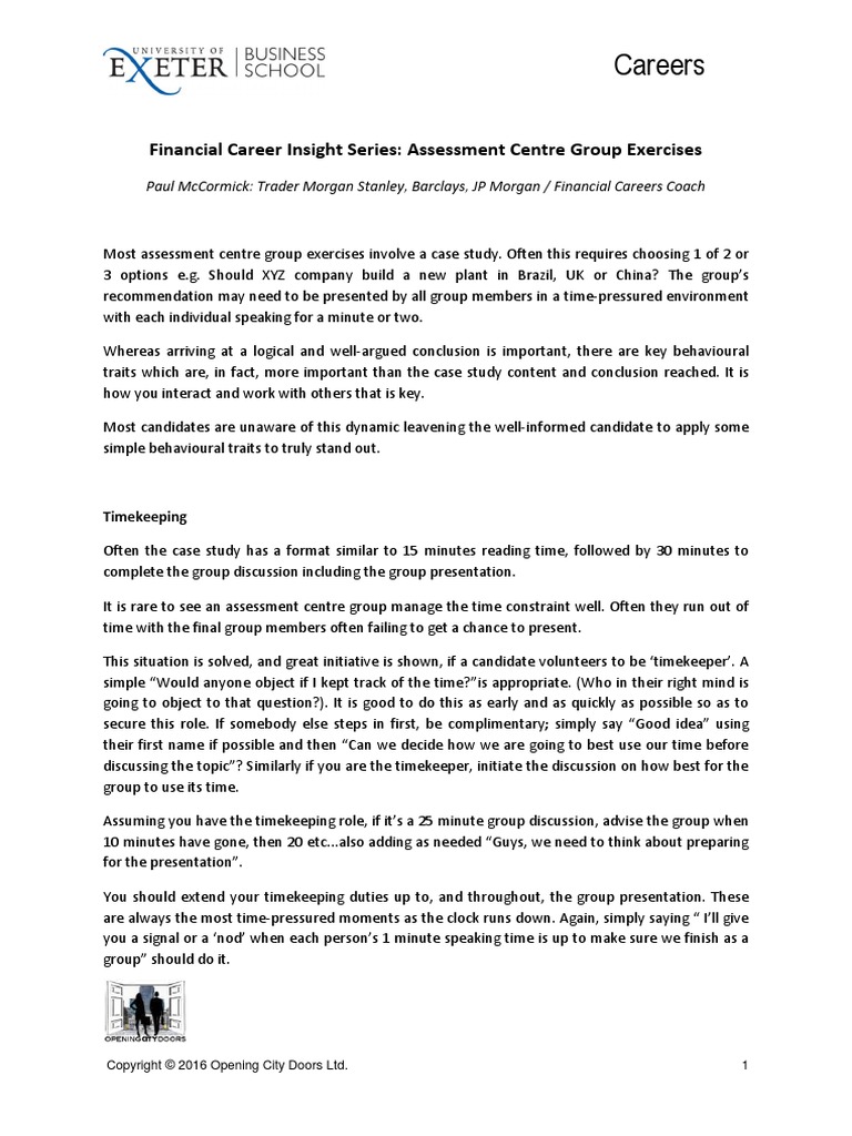 Assessment Centre Group Exercises