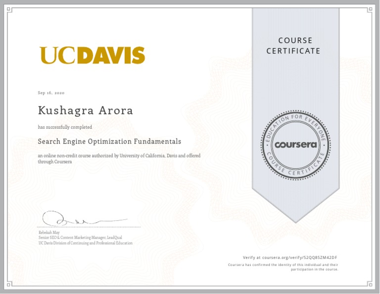Veri f y a t coursera .org /veri f y/52QQ85ZM 42D F