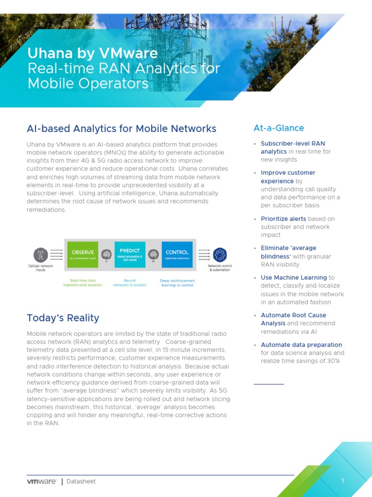 Uhana by VMware is an AI-based analytics platform that provides • Subscriber-level RAN