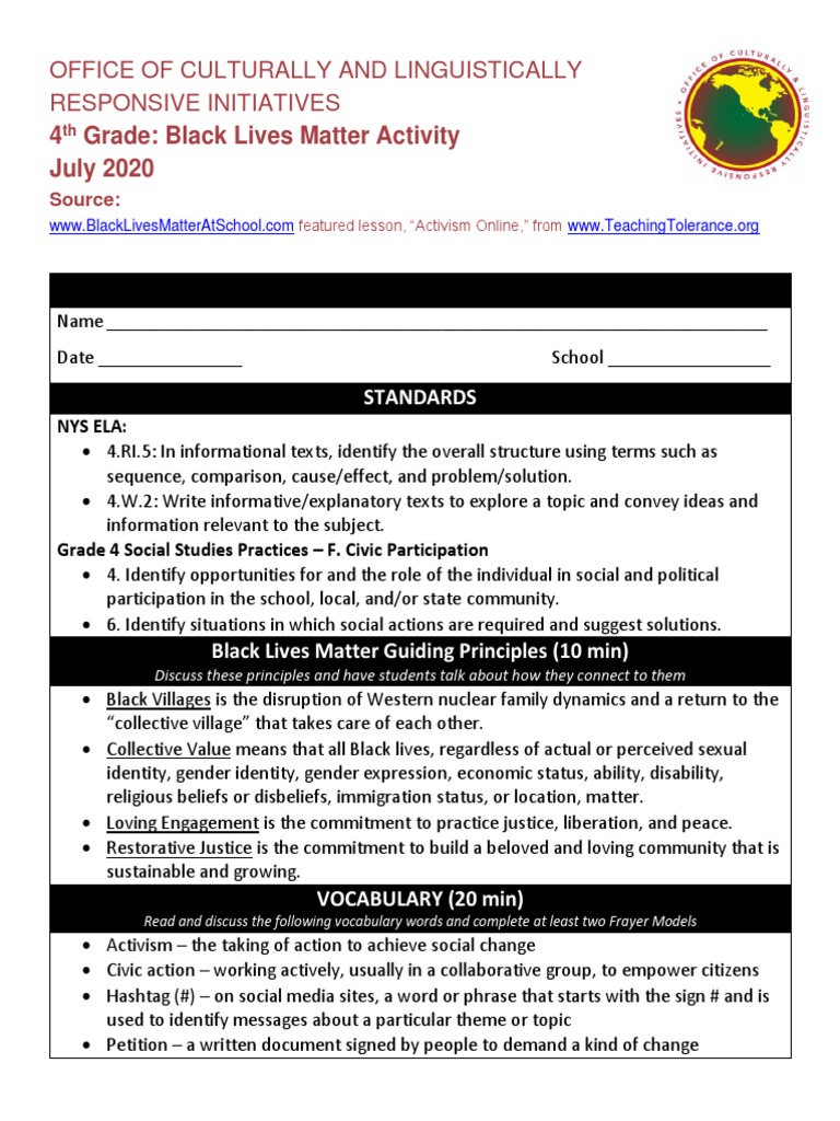 Grade: Black Lives Matter Activity July 2020