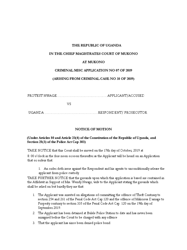 (Under Articles 50 and Article 23(4) of the Constitution of the Republic of Uganda, and