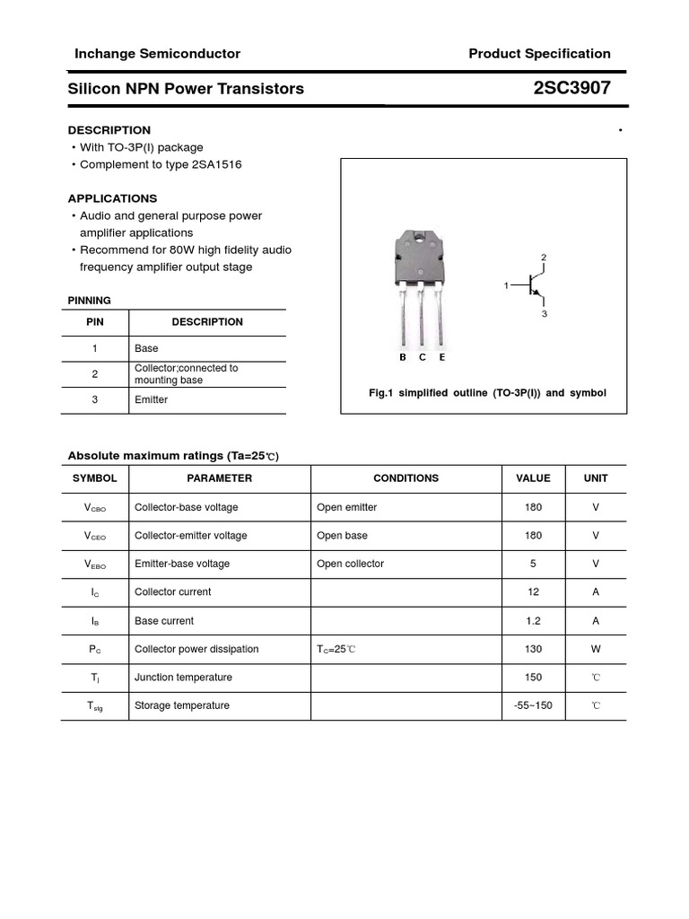Silicon NPN Power Transistors: Inchange Semiconductor Product Specification