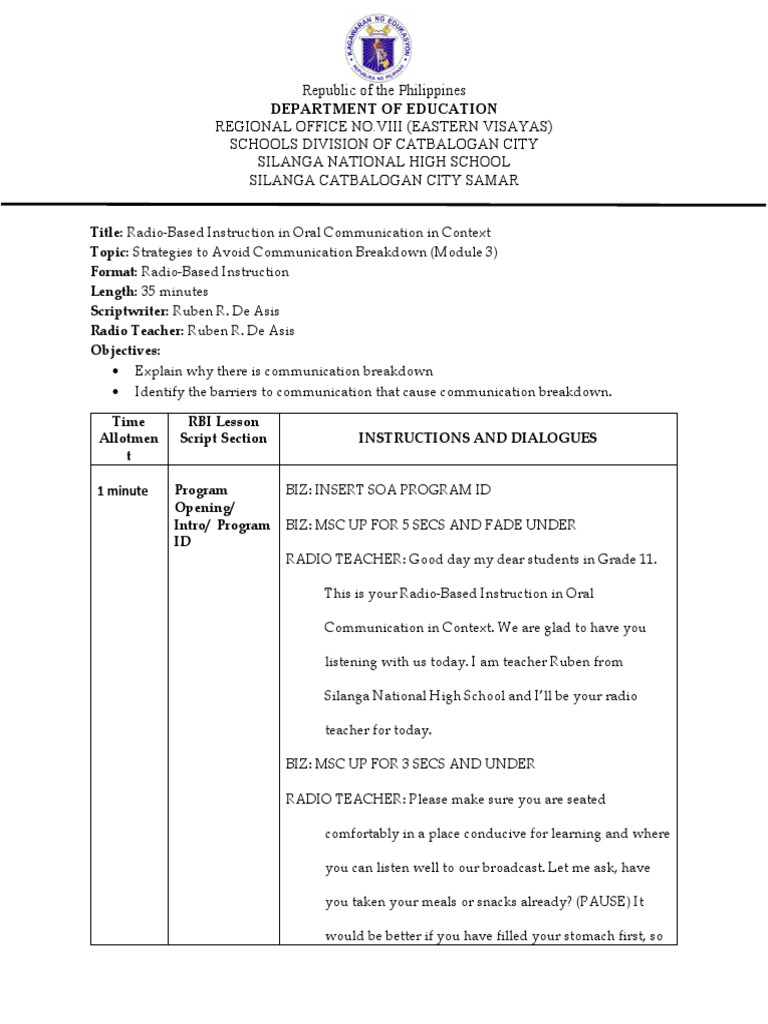 RADIO TEACHER: Good day my dear students in Grade 11.
