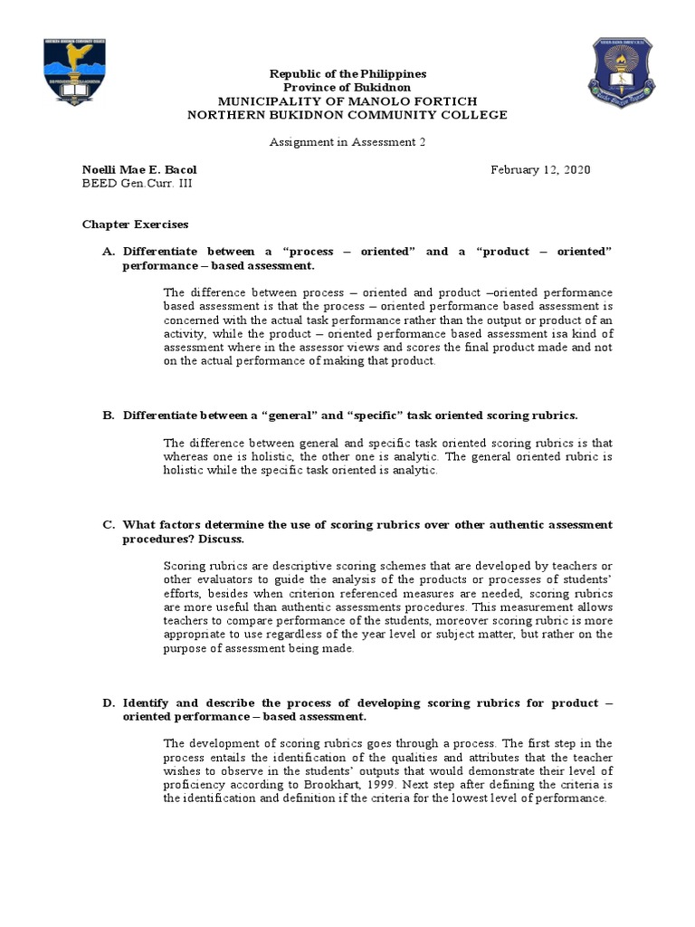 based assessment is that the process – oriented performance based assessment is