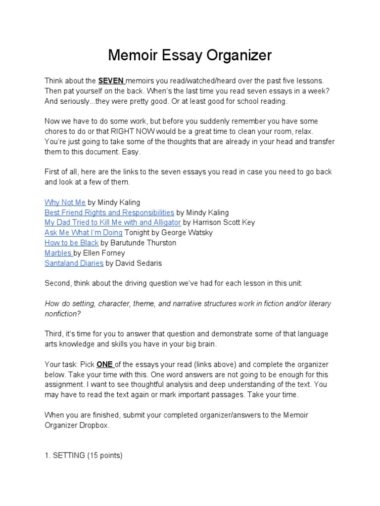 Memoir Essay Organizer