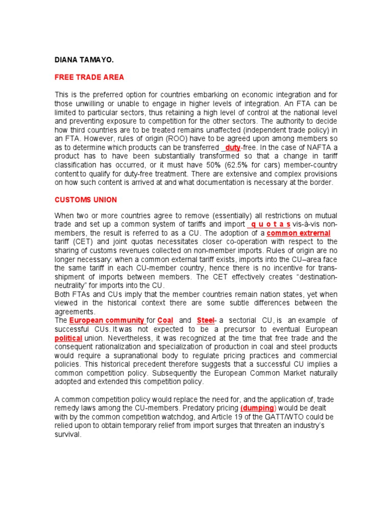 those unwilling or unable to engage in higher levels of integration. An FTA can be