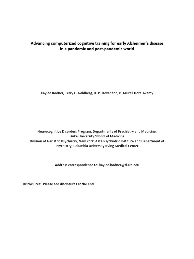 Kaylee Bodner, Terry E. Goldberg, D. P. Devanand, P. Murali Doraiswamy