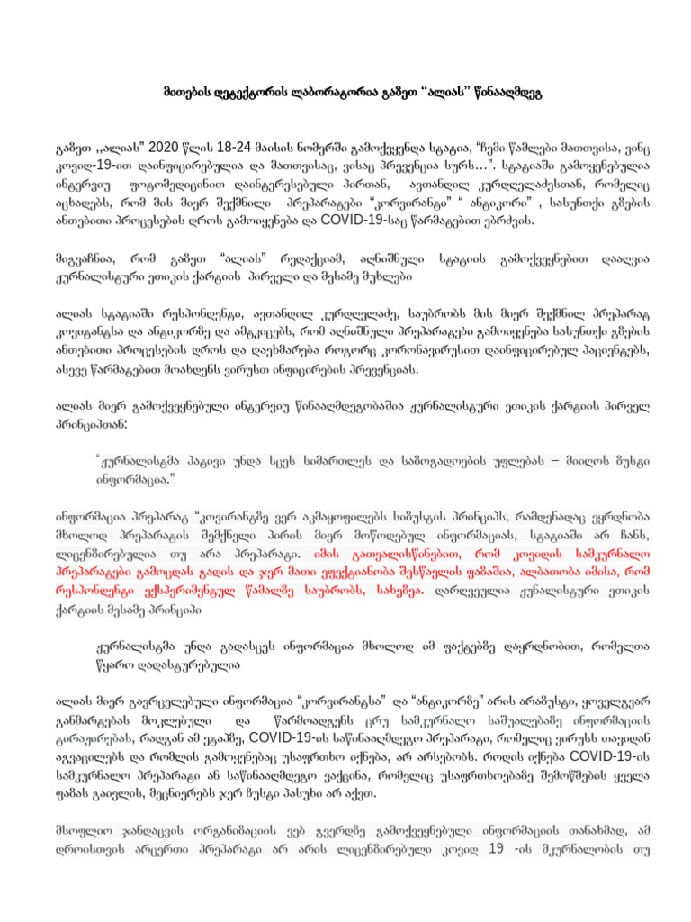 მითების დეტექტორის ლაბორატორია გაზეთ "ალიას" წინააღმდეგ