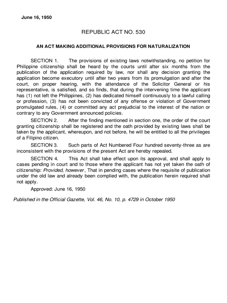 REPUBLIC ACT NO. 530
