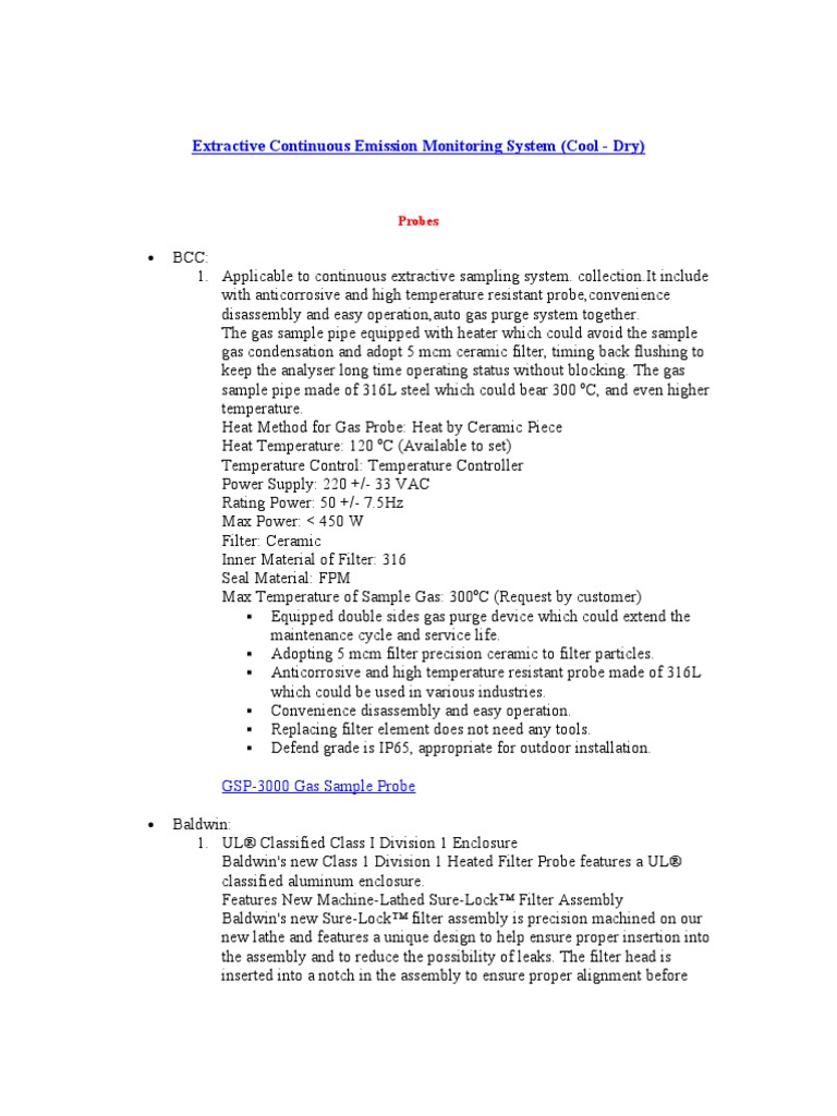 cement industry in mind. An aperture on the gas extraction probe is designed