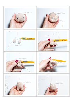 Attach the safety eyes between round 17 and 18 with an interspace of 12 stitches.