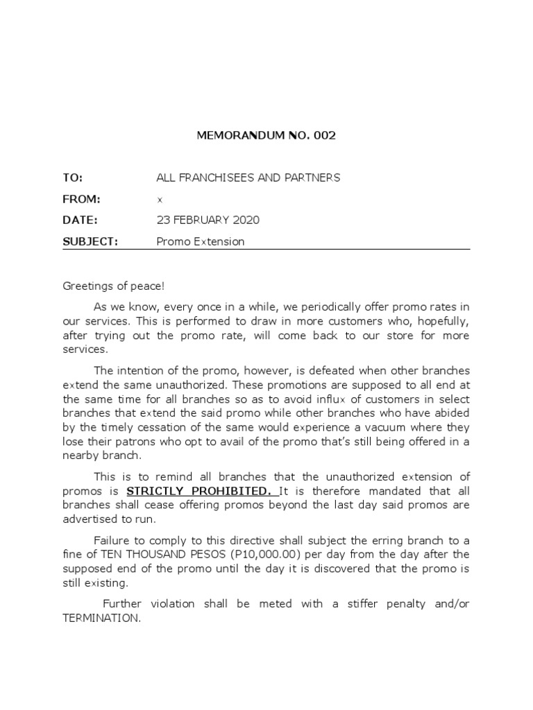 This is to remind all branches that the unauthorized extension of