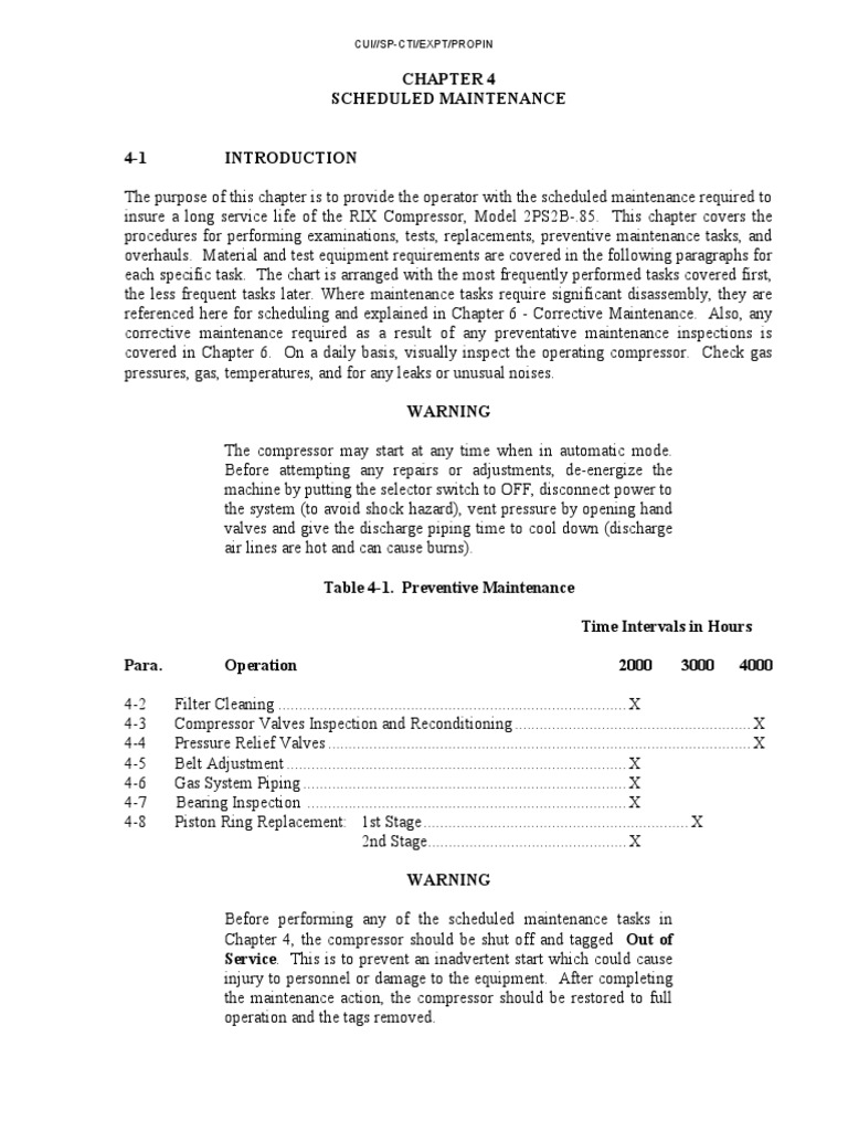 Chapter 4, the compressor should be shut off and tagged Out of