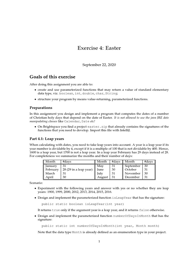 • Design and implement the functions easterMonth and easterDay that compute the day