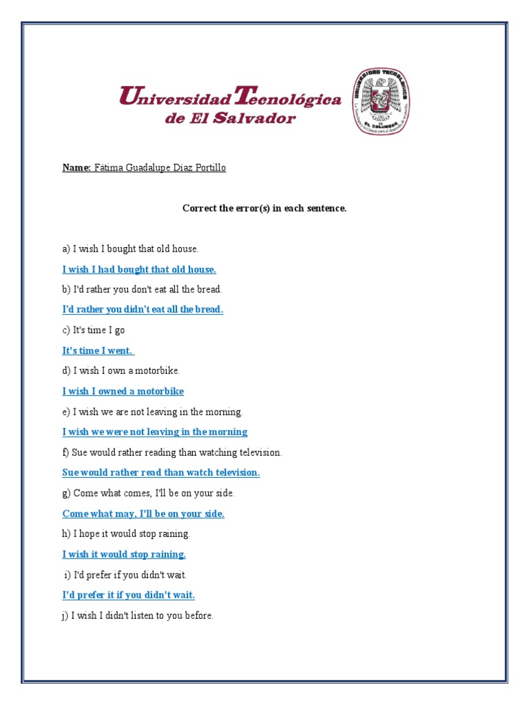 d) I wish I own a motorbike.