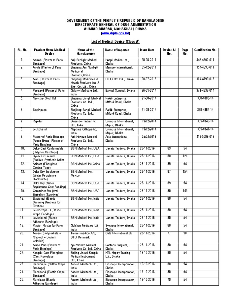Imported Medical Devices - Class - A