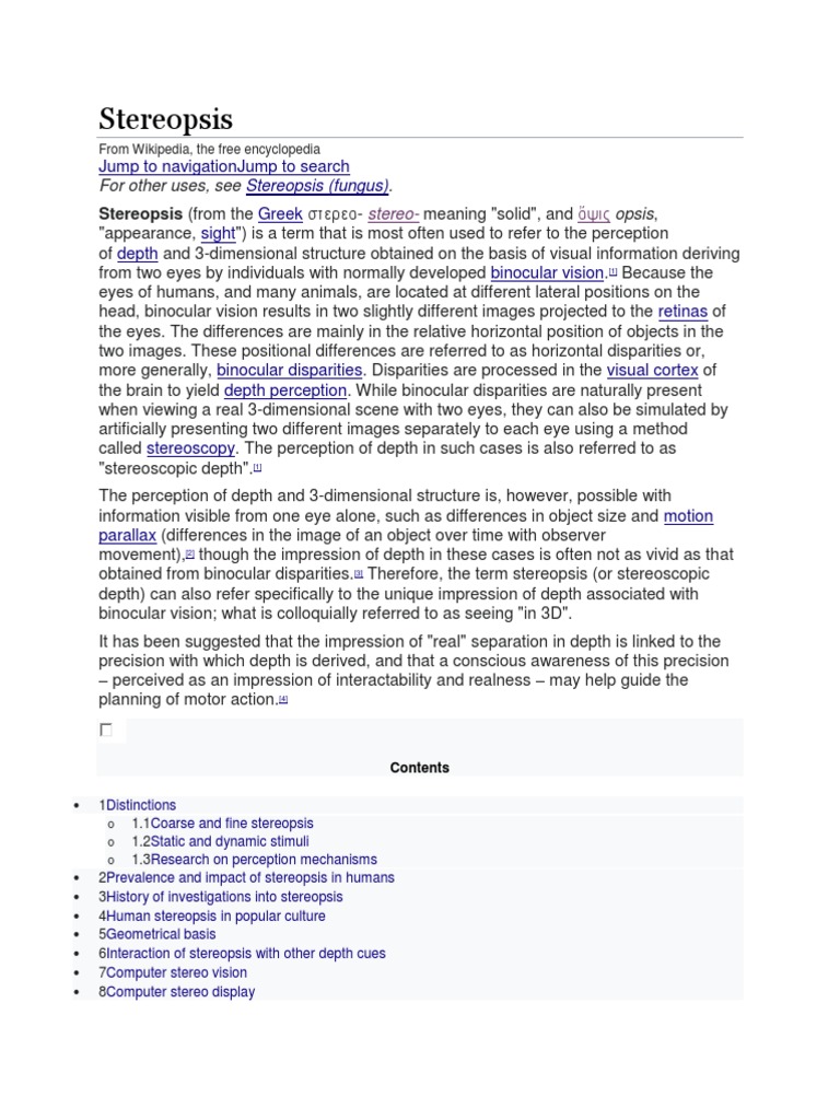 obtained from binocular disparities.[3] Therefore, the term stereopsis (or stereoscopic
