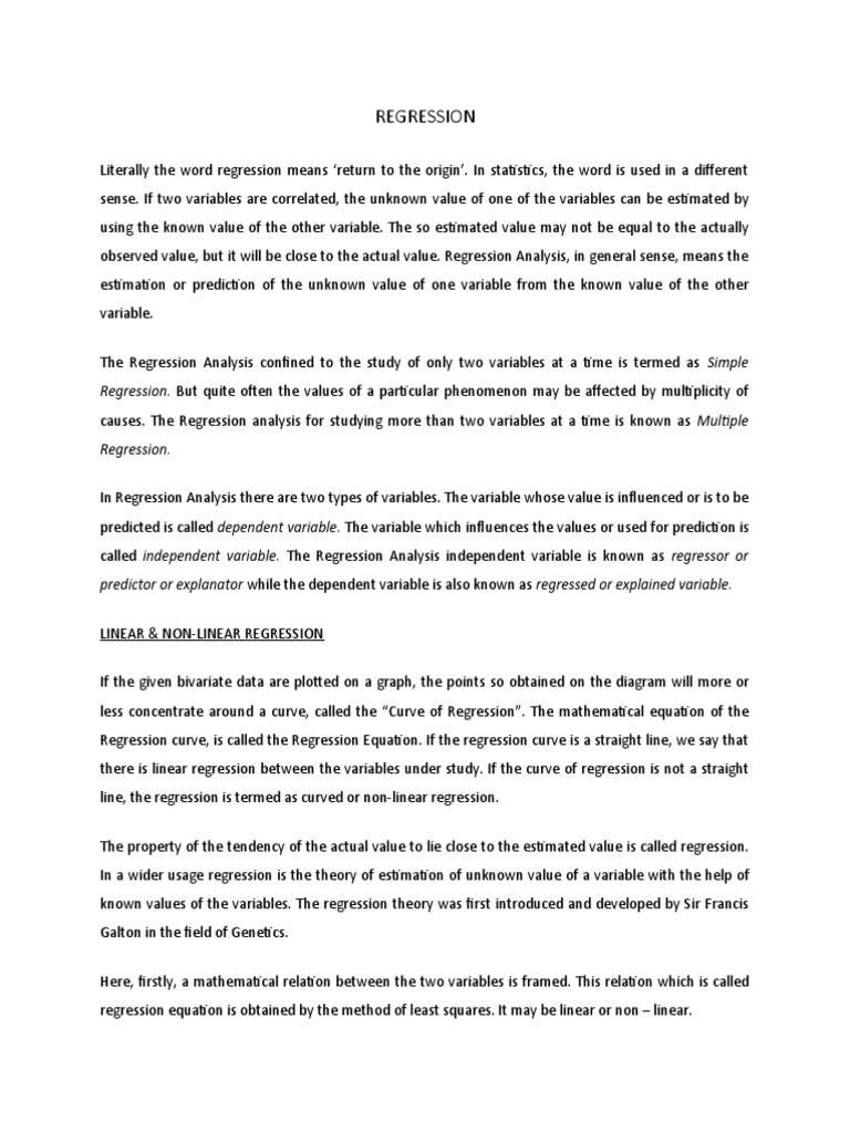 known values of the variables. The regression theory was first introduced and developed by Sir Francis