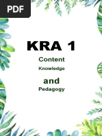 This document outlines 5 key result areas (KRAs) that teachers are evaluated on: 1) Content knowledge and pedagogy, 2) Learning environment and diversity of learners, 3) Curriculum and planning, 4) Assessment and reporting, 5) Plus factor.