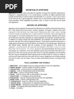 This lesson deals with the equipment used in the production of appetizers, classifications of