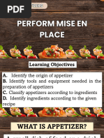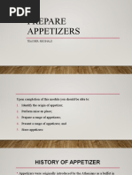 appetizers, identification of ingredients used for appetizers, preparation and presentation of attractive