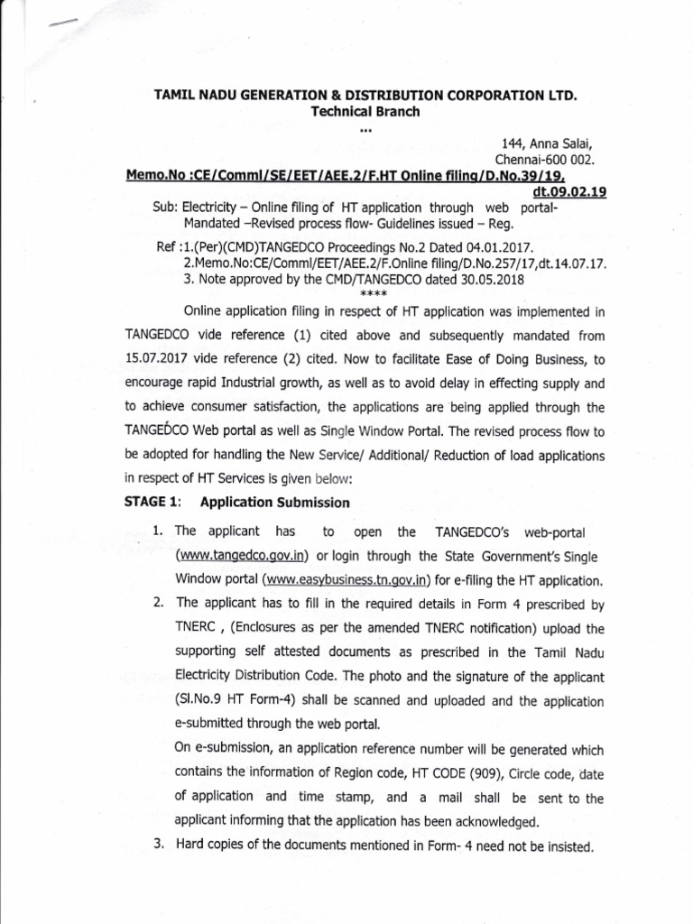 TANGEbCO Web portal as well as Single Window Portal. The revised process flow to